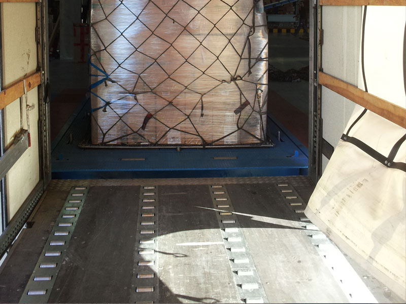 - Lonas con sistema de rodillos para carga y descarga de pallets aéreos.